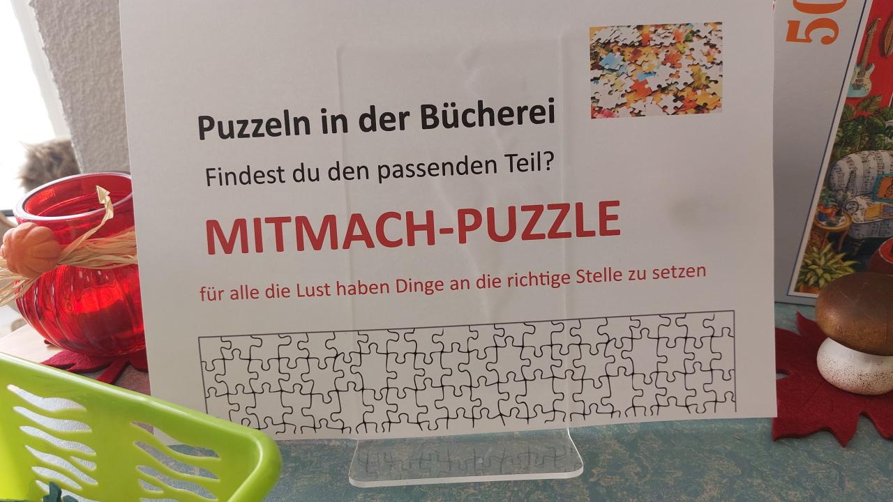 Barbara Kupfner Oktober, 2025 Mitmach-Puzzle in der Bücherei Alle Puzzle-Liebhaber haben die Möglichkeit beim Büchereibesuch an dem Mitmach-Puzzle zu arbeiten.